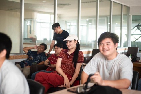 สำหรับเบื้องหลัง "กองถ่าย" ของนักศึกษาสาขาการจัดการเมือง ฯ ก็ดูจะสนุกสนานและช่วยเหลือกันทำงานเป็นอย่างดี แม้จะไม่มีอุปกรณ์หรือกล้องถ่ายแบบมืออาชีพ มีเพียงโทรศัพท์มือถือธรรมดา ๆ ในการถ่ายทำ แต่ก็สามารถผลิตสื่อหรือทำ production ออกมาได้อย่างมีคุณภาพ บรรยากาศระหว่างการทำงานเบื้องหลังกองถ่ายก็ดูจะมีความสุขและสนุกสนานกับการถ่ายทำสื่อชิ้นนี้ ตั้งแต่เปิดกองถ่ายกับเจ้าพ่อมอดินแดงจนถึงปิดกองถ่าย ดังภาพบรรยายากาศการทำงานของนักศึกษา